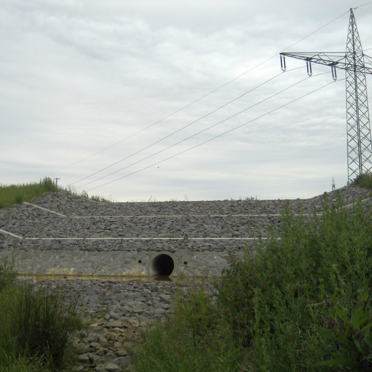 Weiterhin wurde der Hochwasserabfluss in die Ortslage durch Etablierung eines Hochwasserrückhaltebeckens mit einem Speichervolumen von ca. 50.000 m³ reduziert.