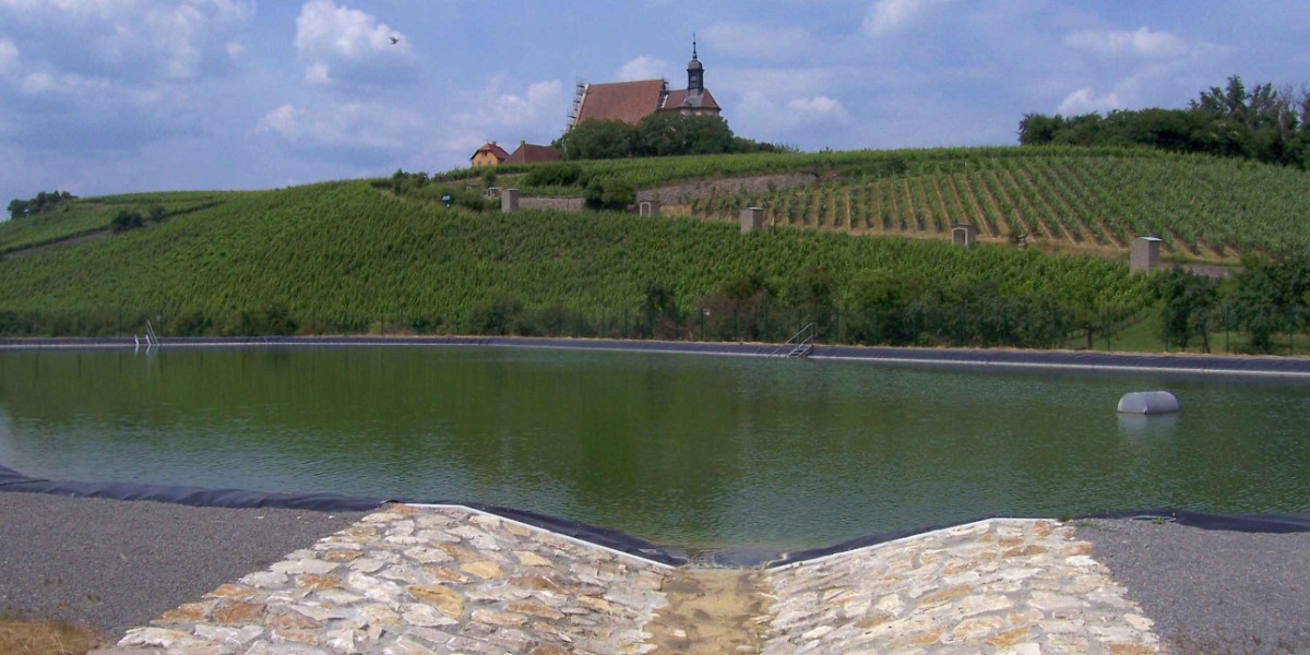 Die Weinbergbetropfungsanlage stellt ein Oberflächenwasserbewirtschaftungssystem dar, das insbesondere dem erhöhten Schutzbedürfnis der örtlichen Trinkwasserschutzzone Rechnung trägt.